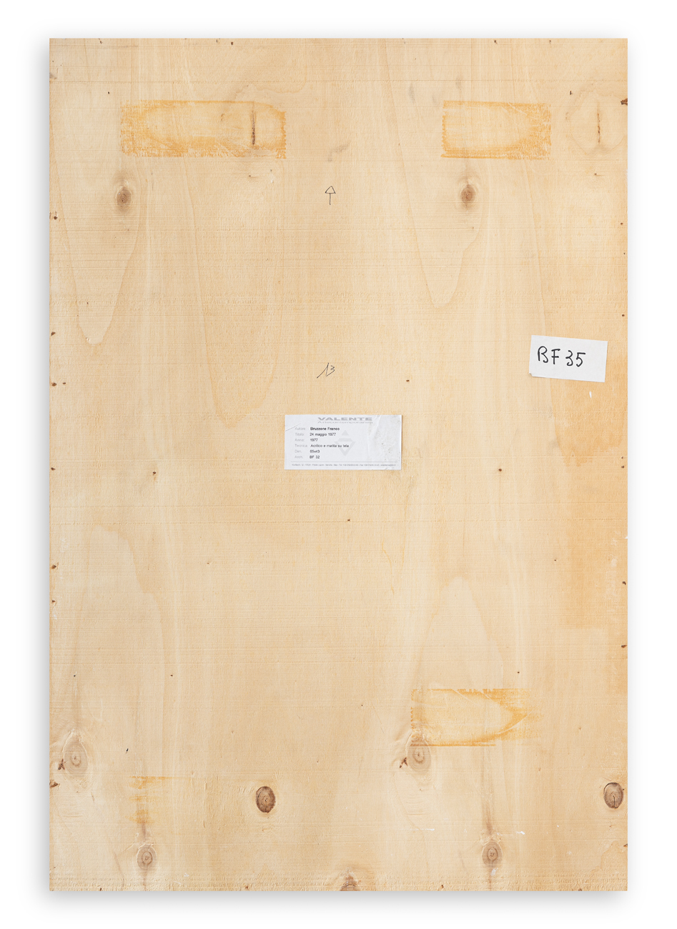 Etichetta della Galleria Valente Arte Contemporanea (SV) al retro
