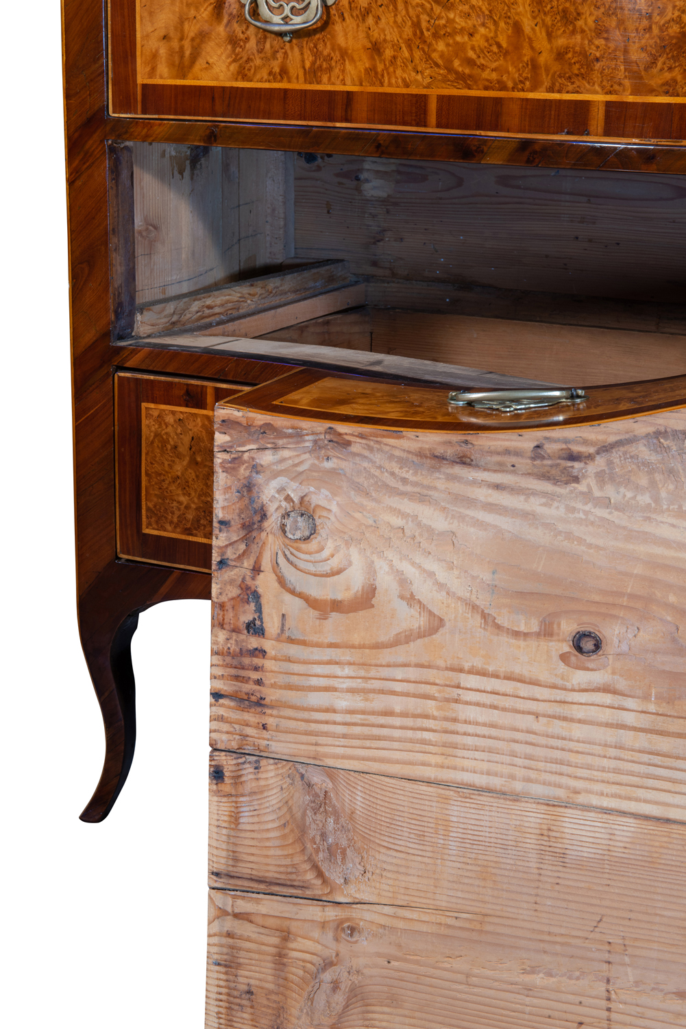 Stato di conservazione. Supporto: 80% (rifacimenti, per esempio ai correnti dei cassetti; maniglieria sostituita e in parte stilisticamente incongrua)