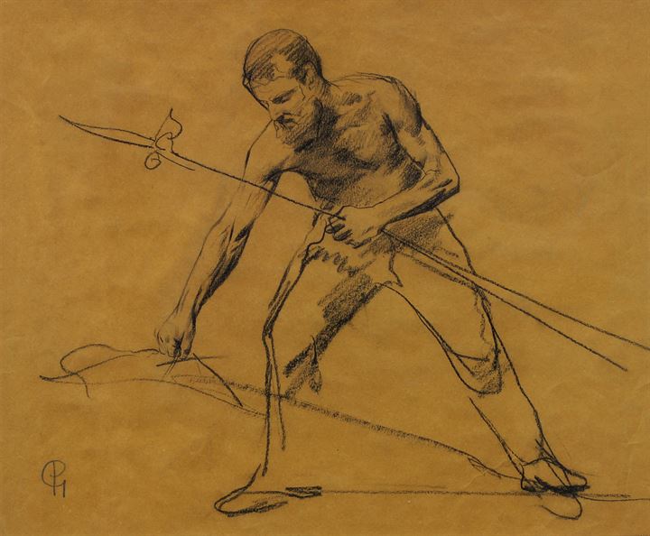 GAIDANO PAOLO Poirino (TO) 1861 - 1917 Torino "Uomo con alabarda" 26x31,5...