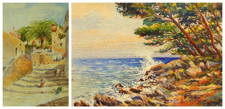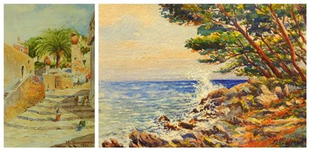 LOTTO DI DUE ACQUERELLI A - "Scorcio napoletano" 1901 19,5x13 acquerello su...