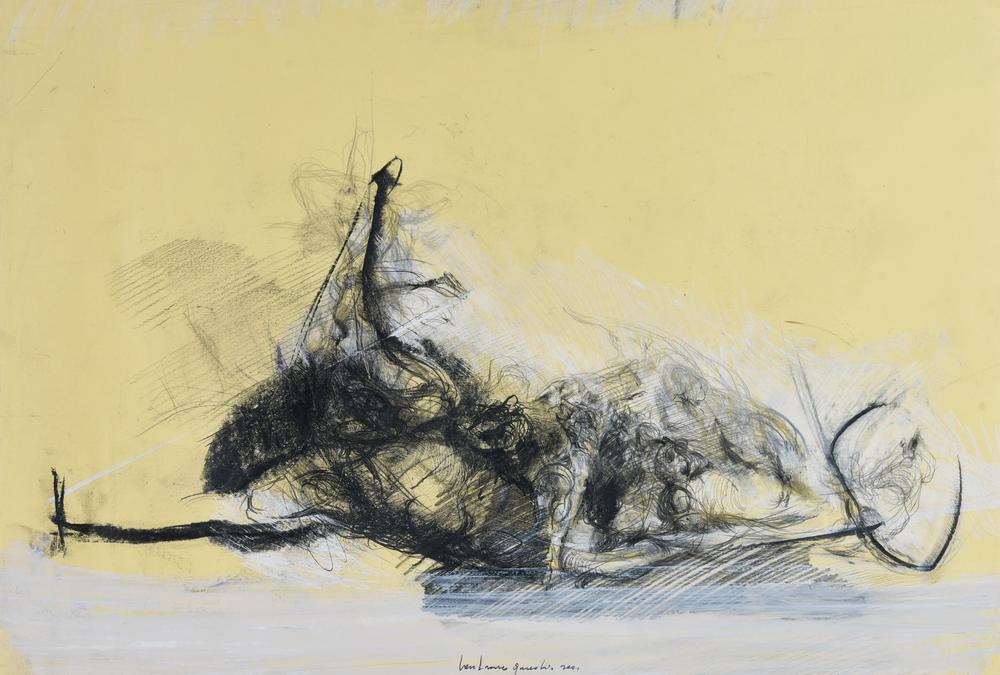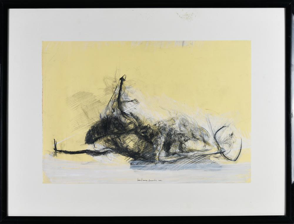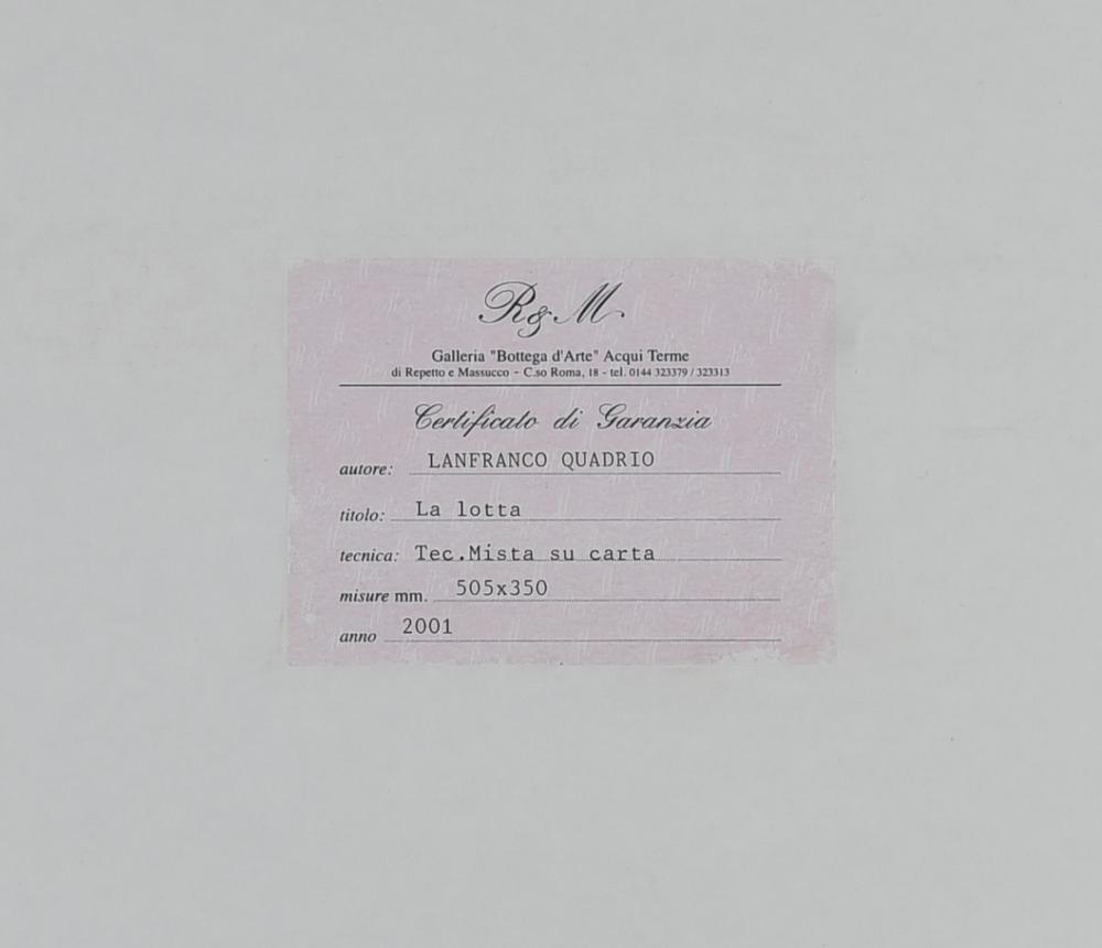 Lanfranco Quadrio LA LOTTA, 2001 tecnica mista su carta, cm 35x50 firma e...
