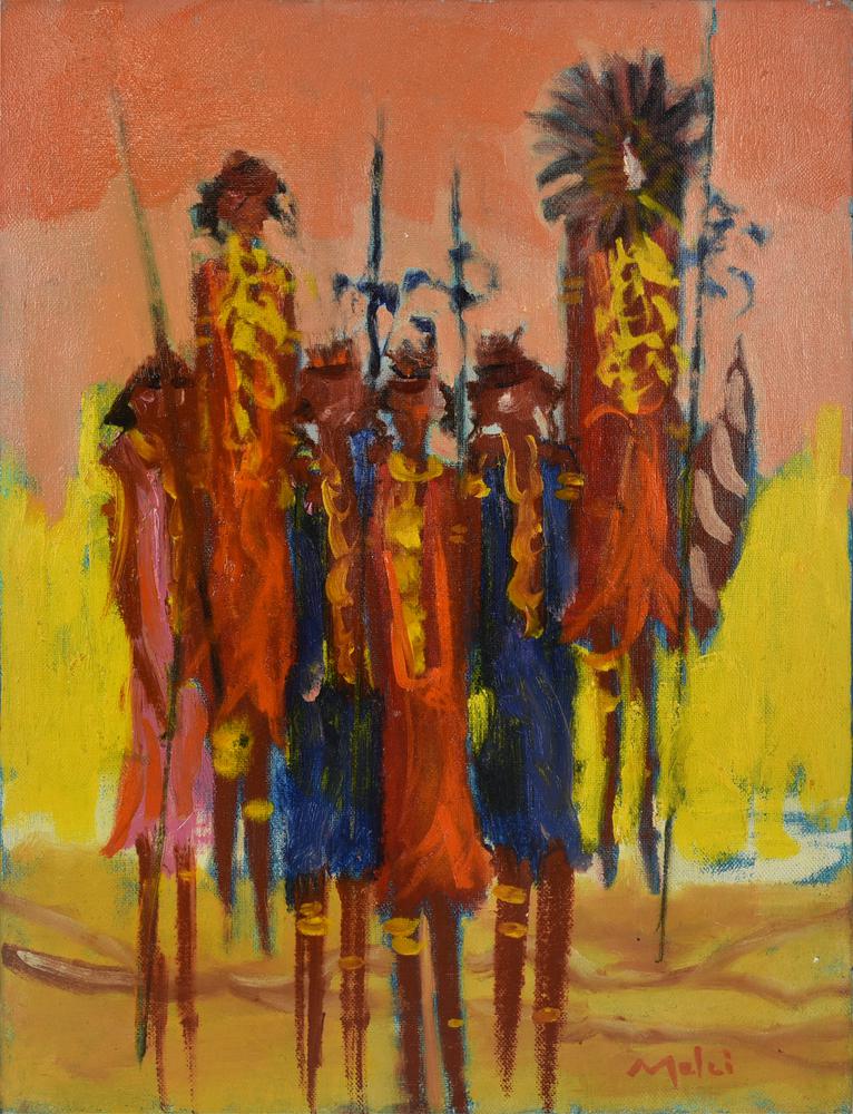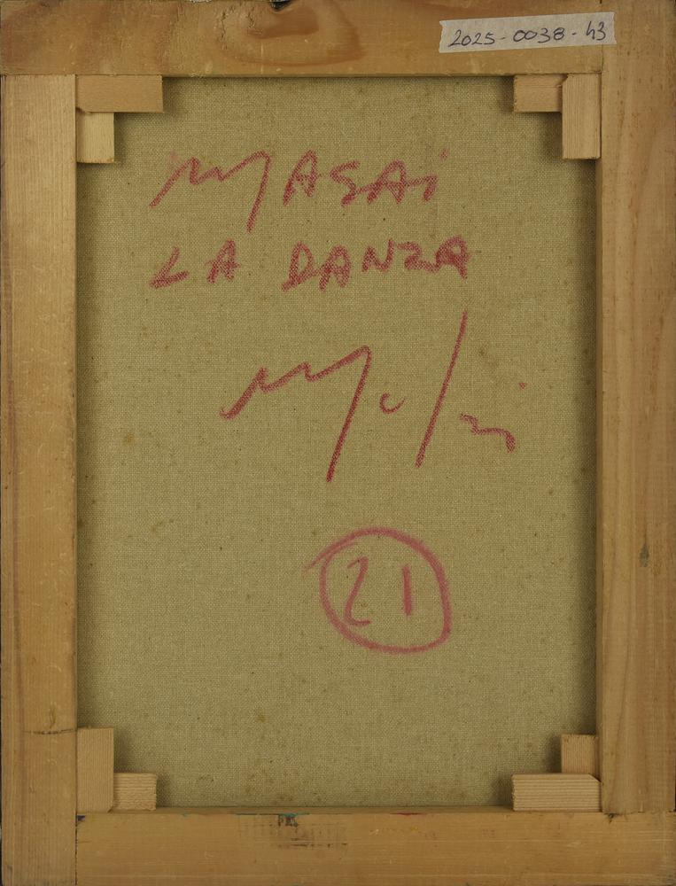 Giorgio Melzi MASAI LA DANZA olio su tela, cm 40x30 firma sul retro: firma e...