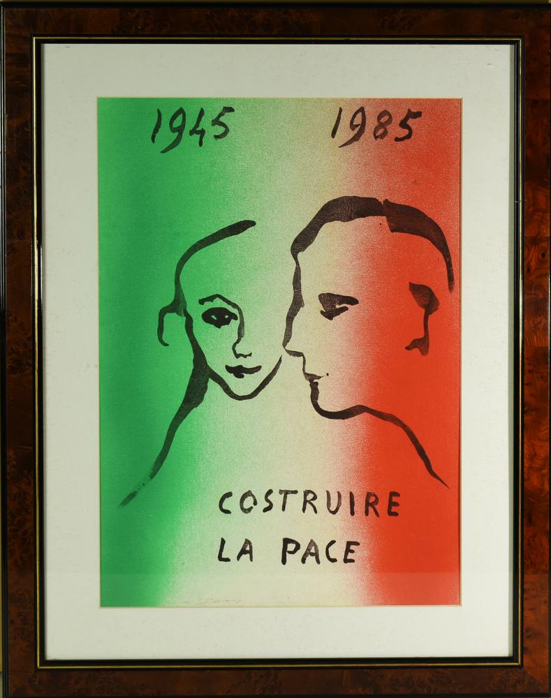 Ernesto Treccani COSTRUIRE LA PACE 1945-1985 tecnica mista su cartone telato,...