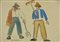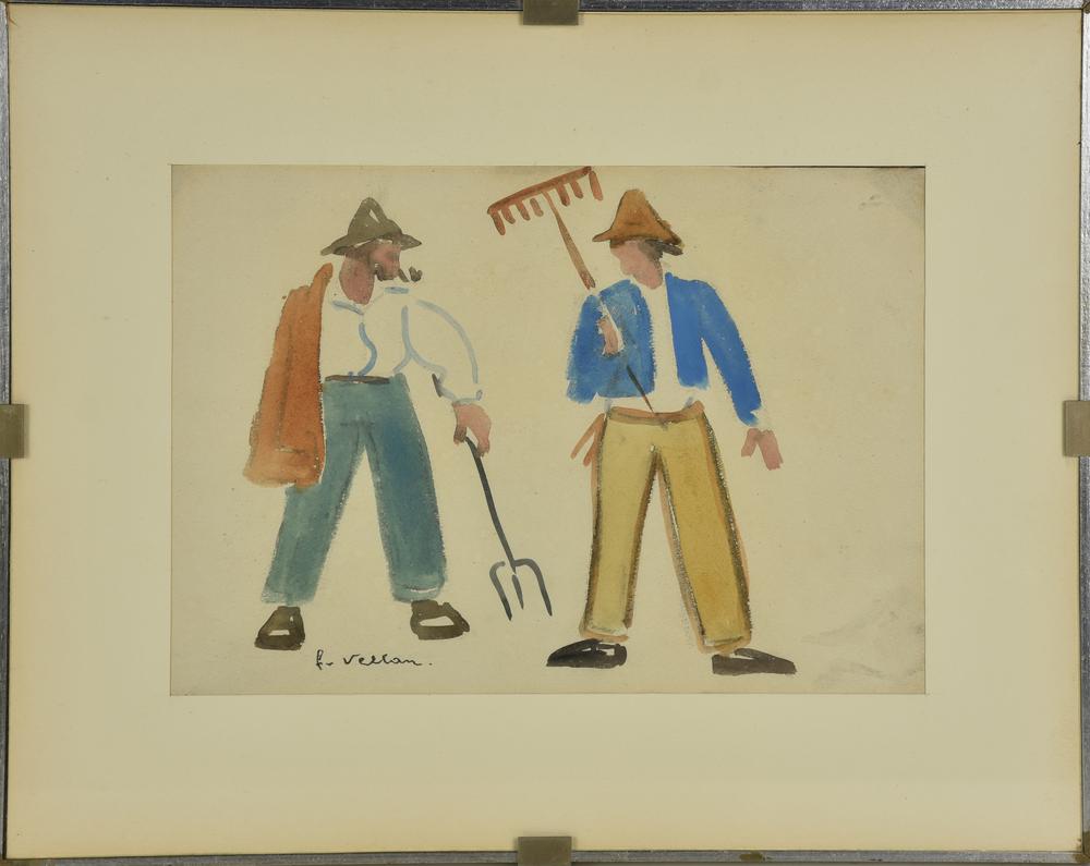 Felice Vellan CONTADINI acquerello su carta, cm 18x26 firma