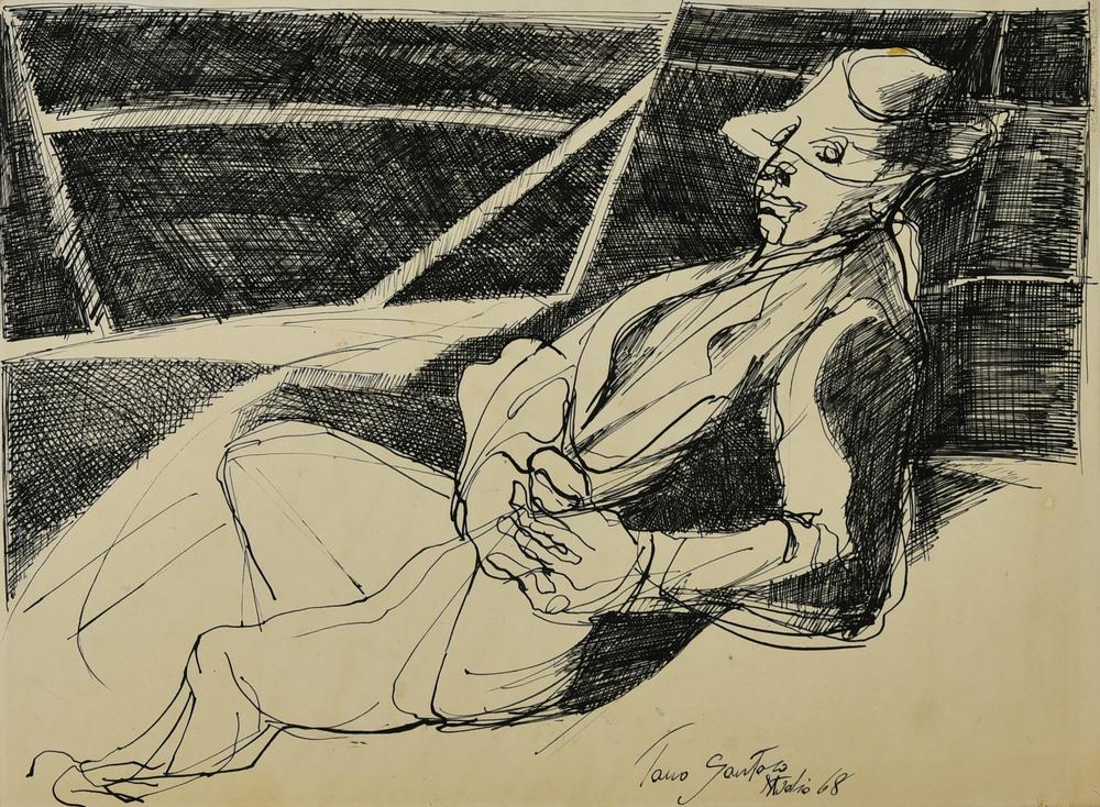 Tano Santoro STUDIO, 1968 china su carta, cm 25x35 firma, titolo e data
