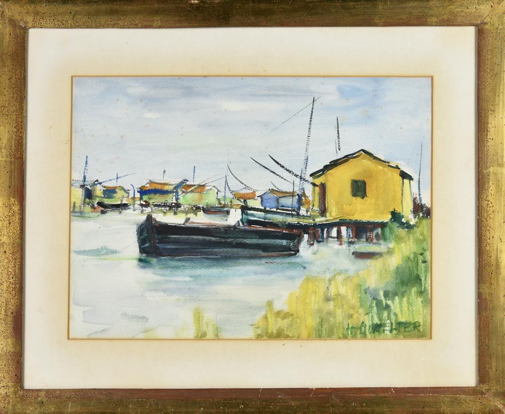 Huber Mumelter KANALE IN RAVENNA, 1961 acquerello su carta, cm 28x39 firma...