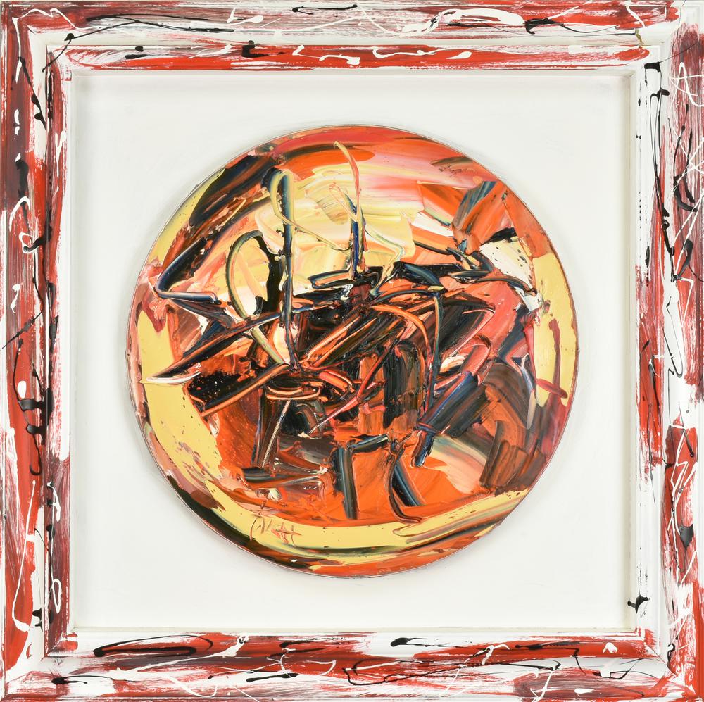 olio su tela con cornice invasa, cm 63x63, tela diam 40 cm