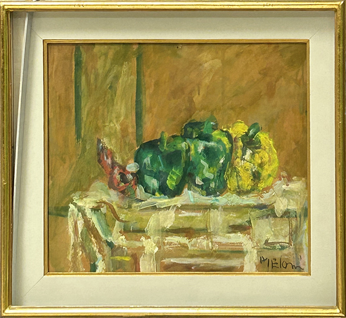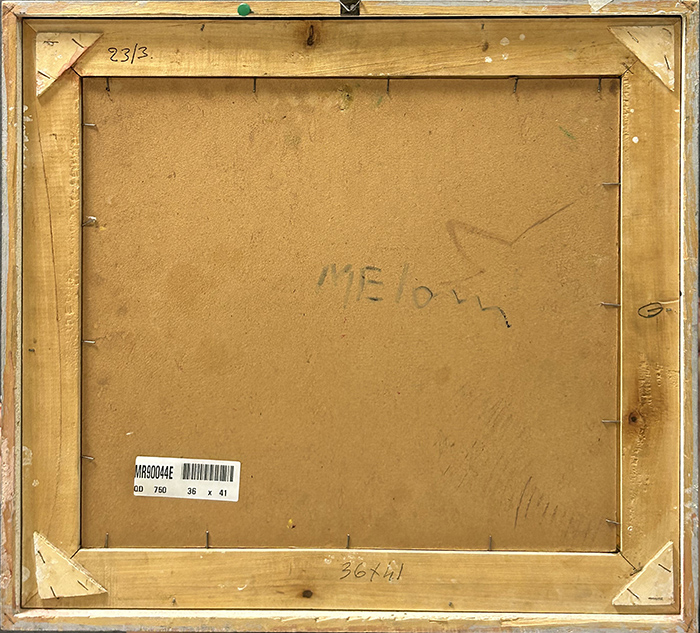 GINO MELONI, "Natura morta", olio su masonite, dim. 36x41 cm. Al fronte: firma in basso a destra. AL verso: firma al centro. Opera con cornice