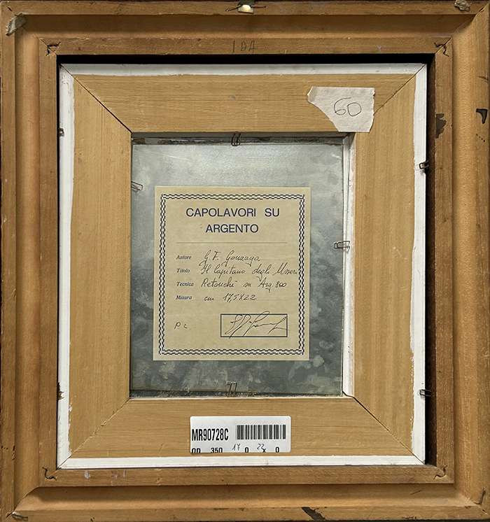 GIANFRANCESCO GONZAGA, "Il capitano degli usseri", retouchè su argento 800, dim. 17,5x22 cm. Al verso: etichetta "Capolavori su argento" con informazioni e firma dell'artista. Opera con cornice