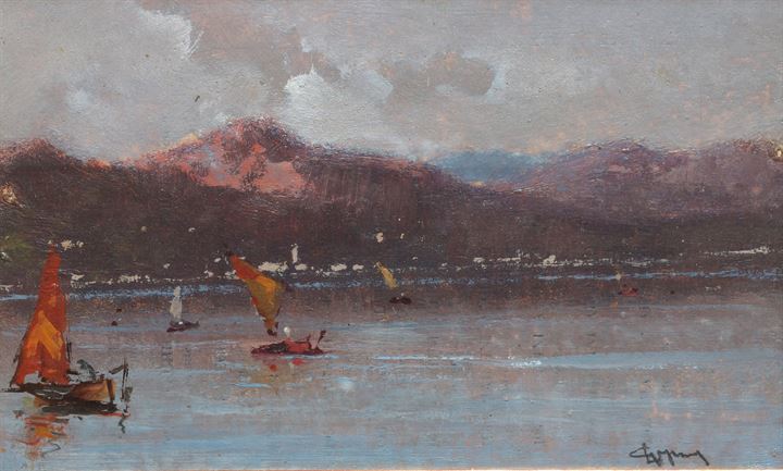 GIGNOUS LORENZO Modena 1862 - 1958 Porto Ceresio (VA) "Barche a vela" 12x19...