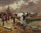 GIORDANO FELICE Napoli 1880 - 1964 Capri (NA) "Tirando le reti" 18x24 olio su...