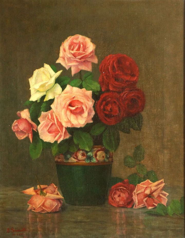 SIMONETTI DOMENICO Candia Canavese (TO) 1893 - ? "Rose" anni '920 64x50 olio...