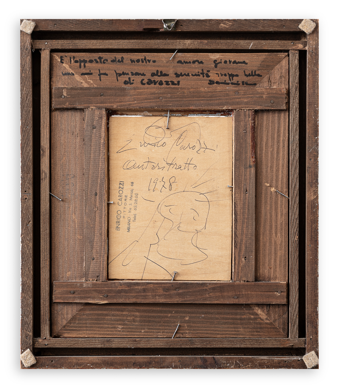 Firma, titolo, datazione e ulteriore schizzo dell'Artista al retro