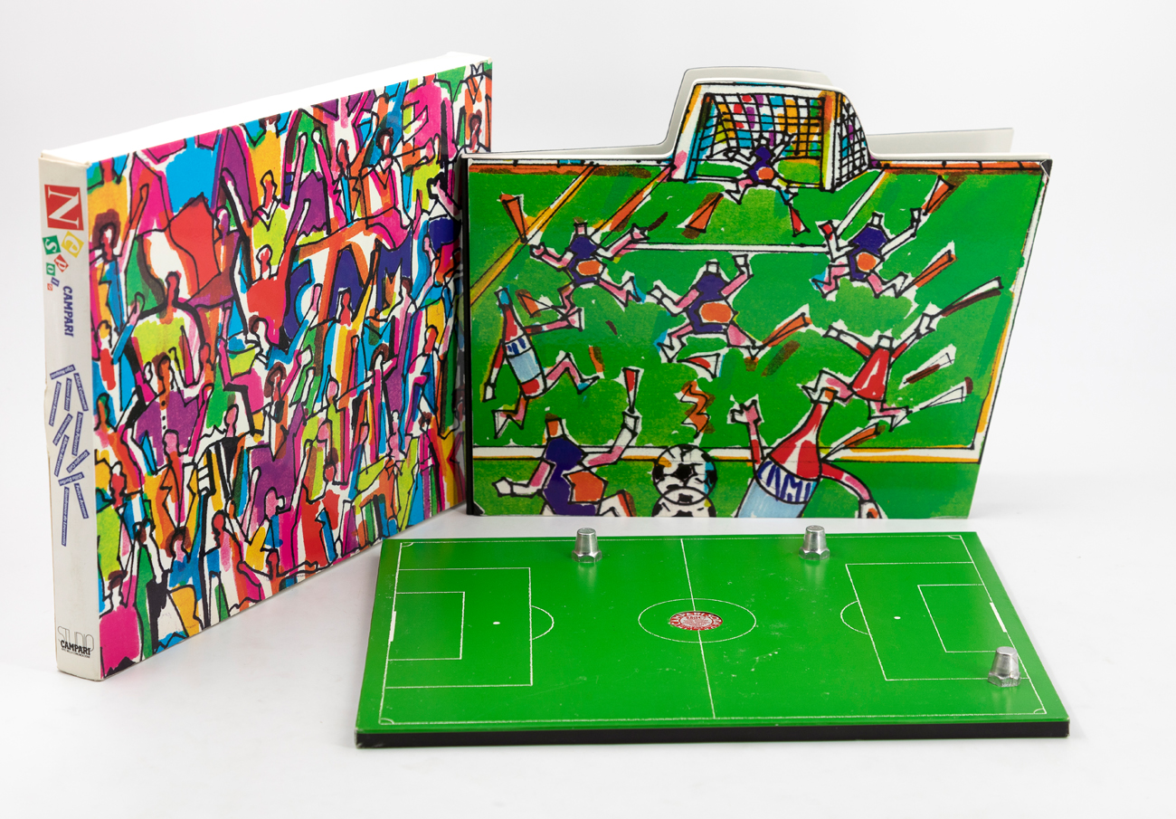 Edizione d'arte contenente un catalogo sagomato a cura di Aldo Colonetti e con numerose illustrazioni di Ugo Nespolo, completo di supporto in cartone e scatola originale