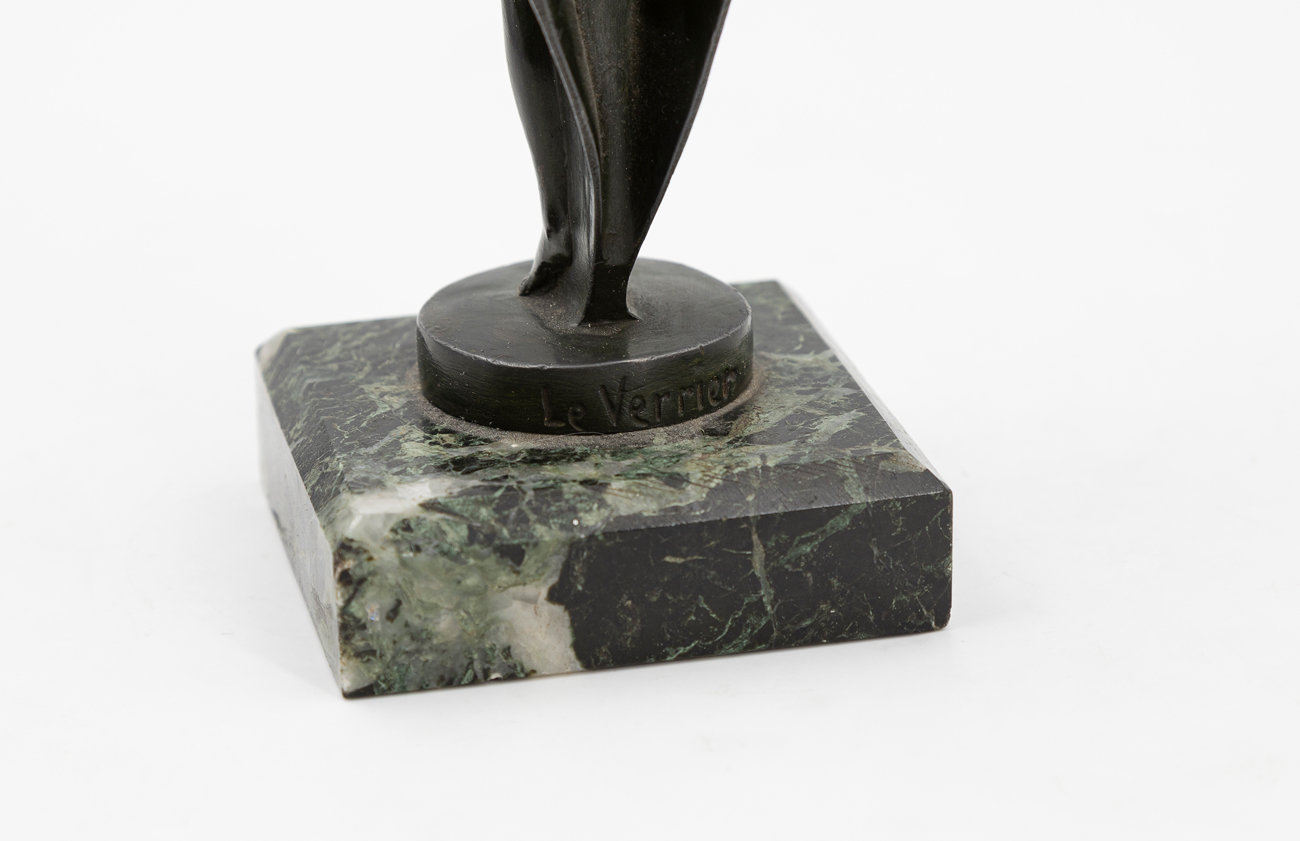 Scultura in bronzo patinato poggiante su base in marmo (d'après Max Le Verrier)