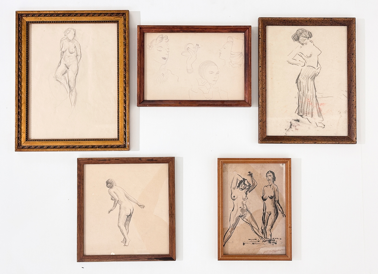 Lotto unico di 5 opere realizzate a carboncino su carta (4) e china su carta (1)