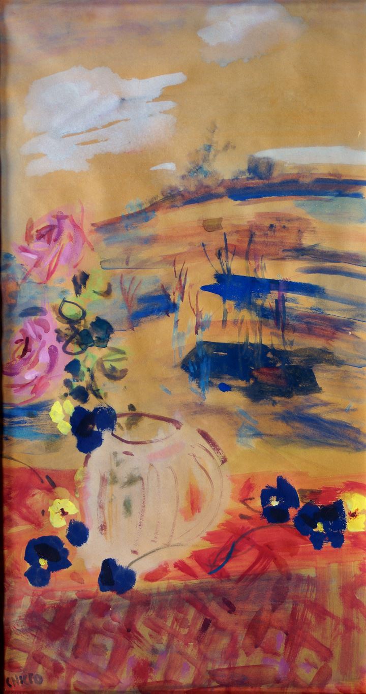 CHICCO RICCARDO Torino 1910 - 1973 "Fiori e paesaggio" 67x40 tecnica mista su...