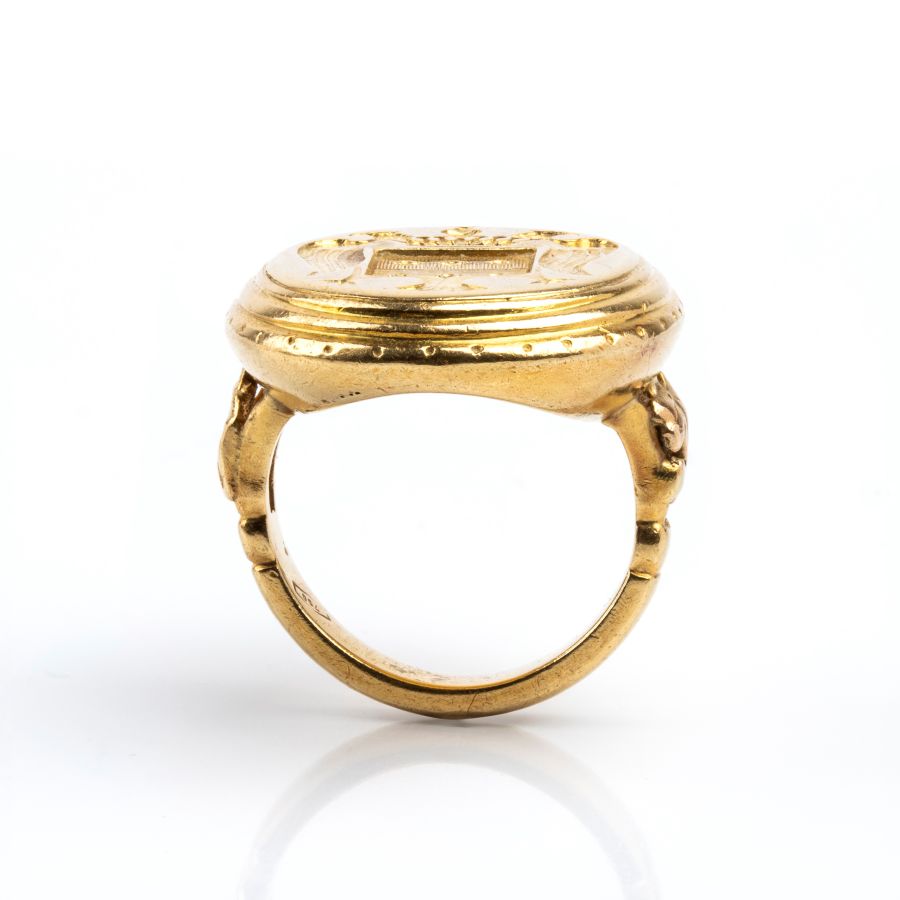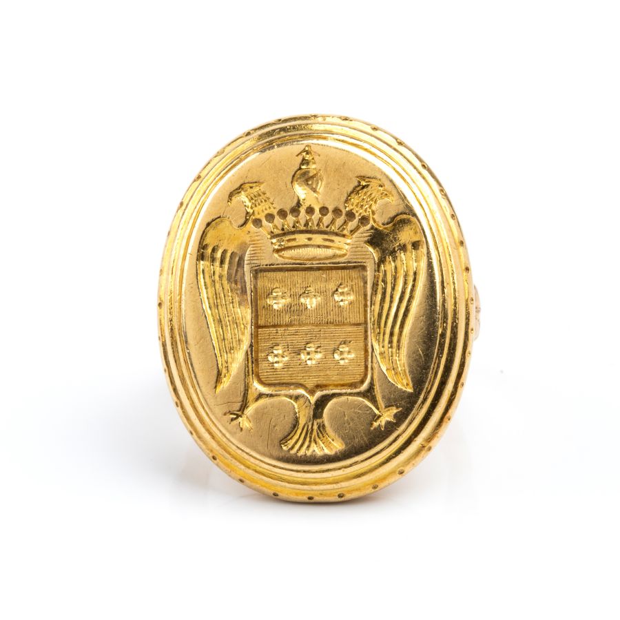 in oro giallo 18k, recante inciso uno stemma araldico nobiliare,