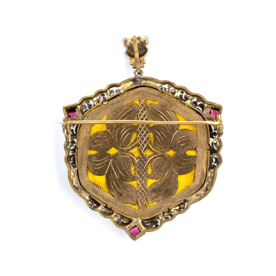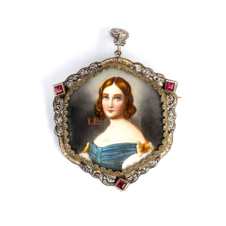 Spilla - pendente in rame e argento con ritratto fine XIX secolo