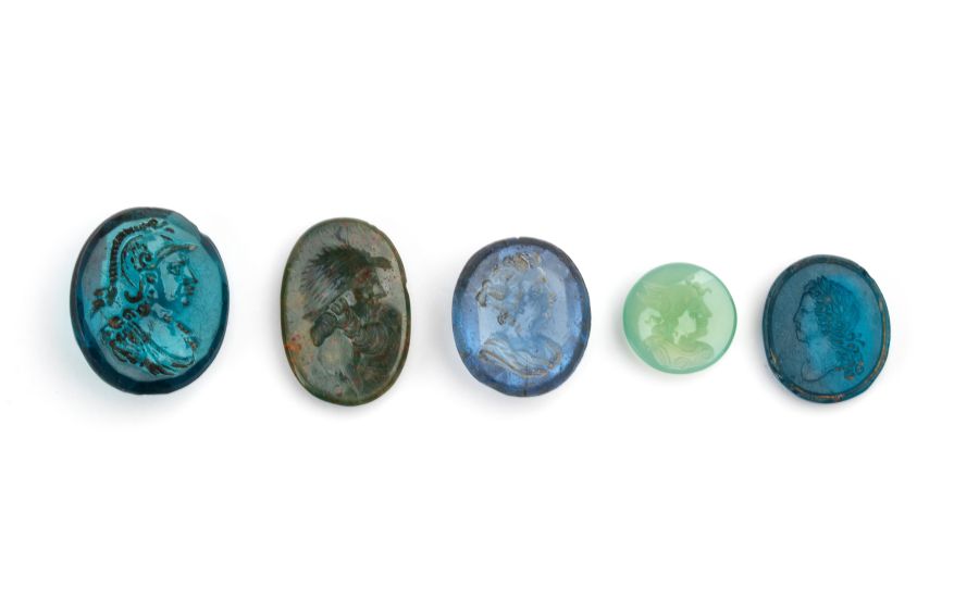 Lotto di 5 intagli in pasta vitrea