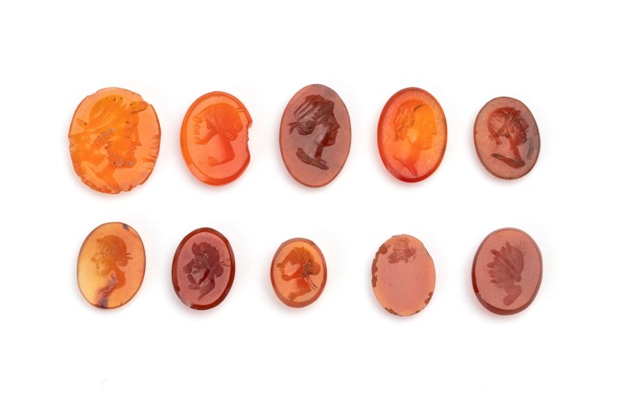 Soggetti vari ispirati da modelli classici raffiguranti profili femminili e maschili.