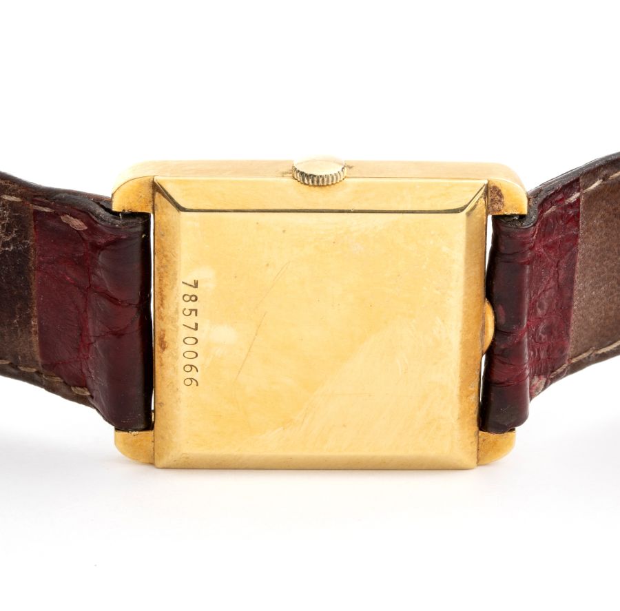 cassa in oro 18k, quadrante argentè con indici dritti. Movimento meccanico a carica manuale. Matricola cassa 78570066.