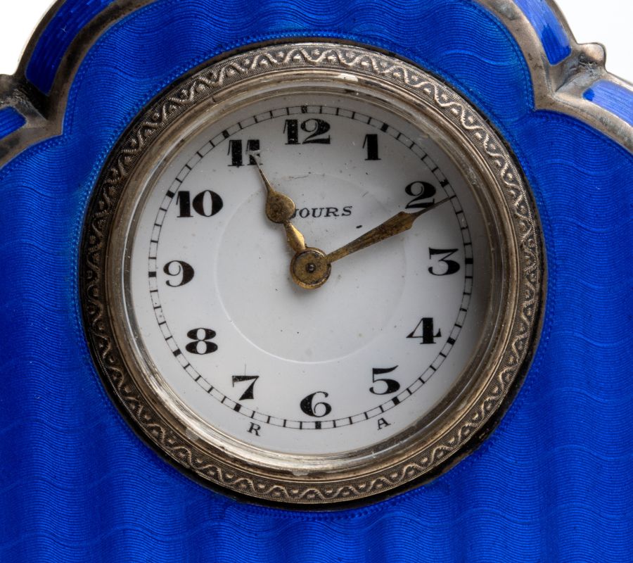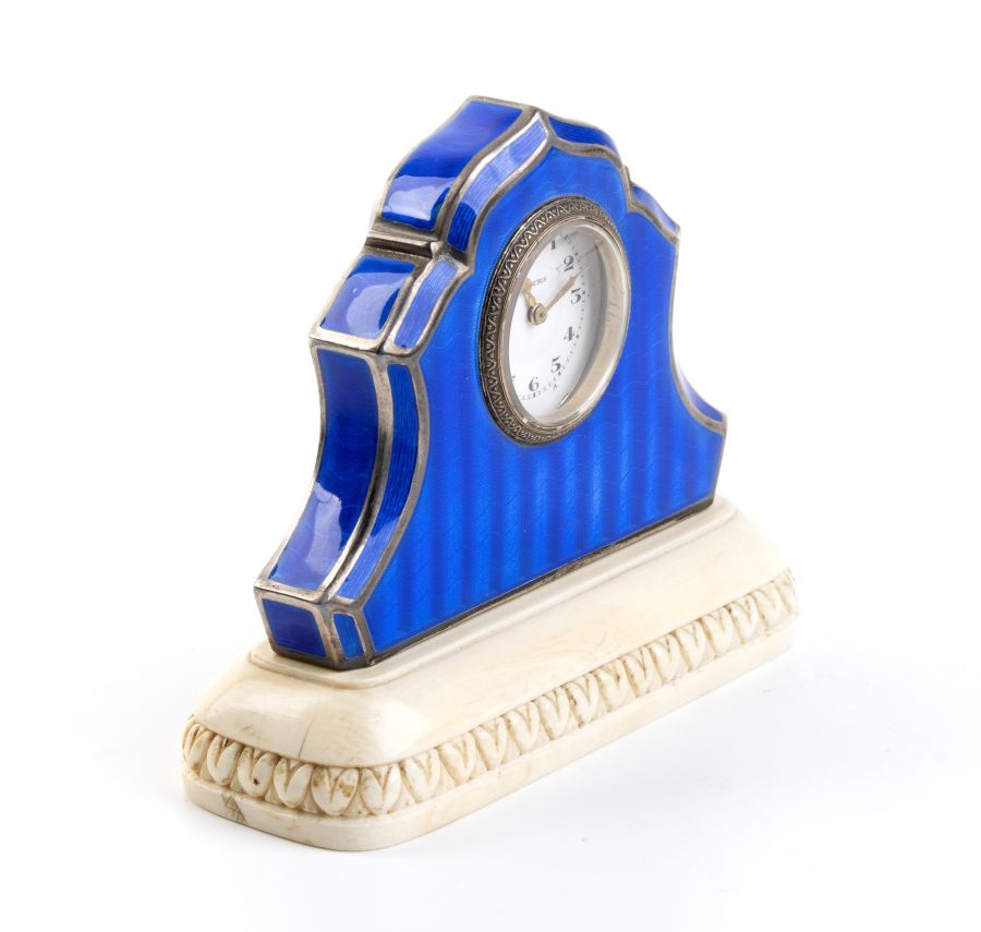 Orologio da tavolo Art Déco in argento, smalto guilloché e avorio Anni '20 - '30