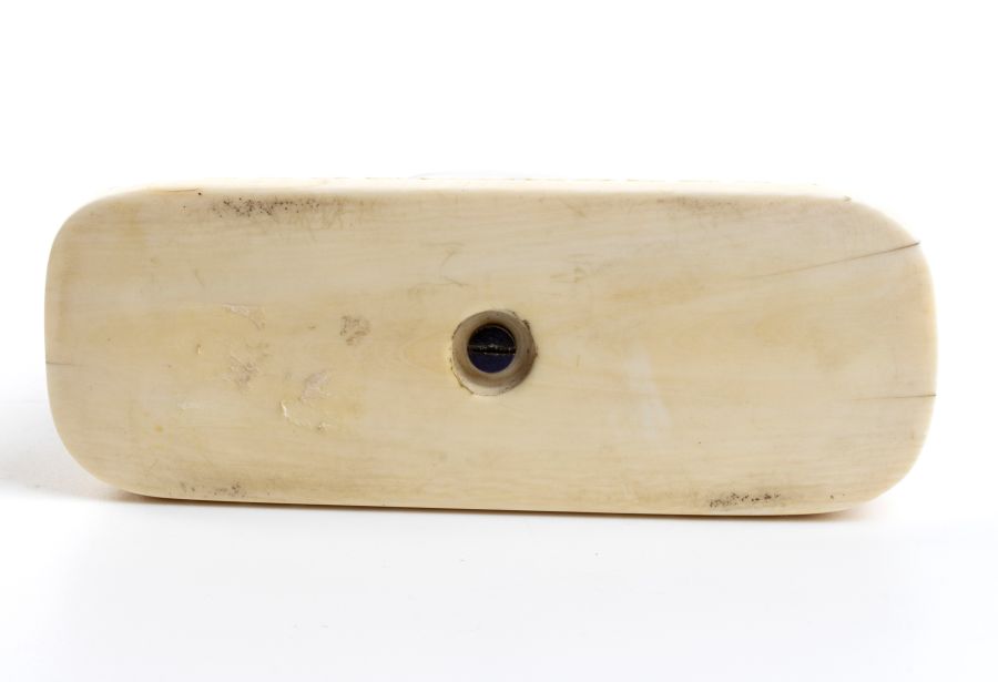 Orologio da tavolo Art Déco in argento, smalto guilloché e avorio Anni '20 - '30 Altezza x larghezza x profondità: 8,2 x 10,1 x 3,7 cm. Peso totale 276,8 gr. Peso base avorio 97 gr.