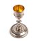 Altezza x diametro: 22 x 14,5 cm. Peso: 450 gr. in argento realizzato a sbalzo e cesello, a base circolare, fusto a balaustro e nodo centrale, con coppa dorata internamente, dalla linea sobria ed essenziale, caratterizzato da una superficie liscia e priva di decorazioni.