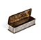 Altezza x larghezza x profondità: 5 x 18,5 x 6 cm. Peso: 225 gr. di forma rettangolare, con coperchio incernierato e interno dorato, interamente decorata a motivi vegetali.