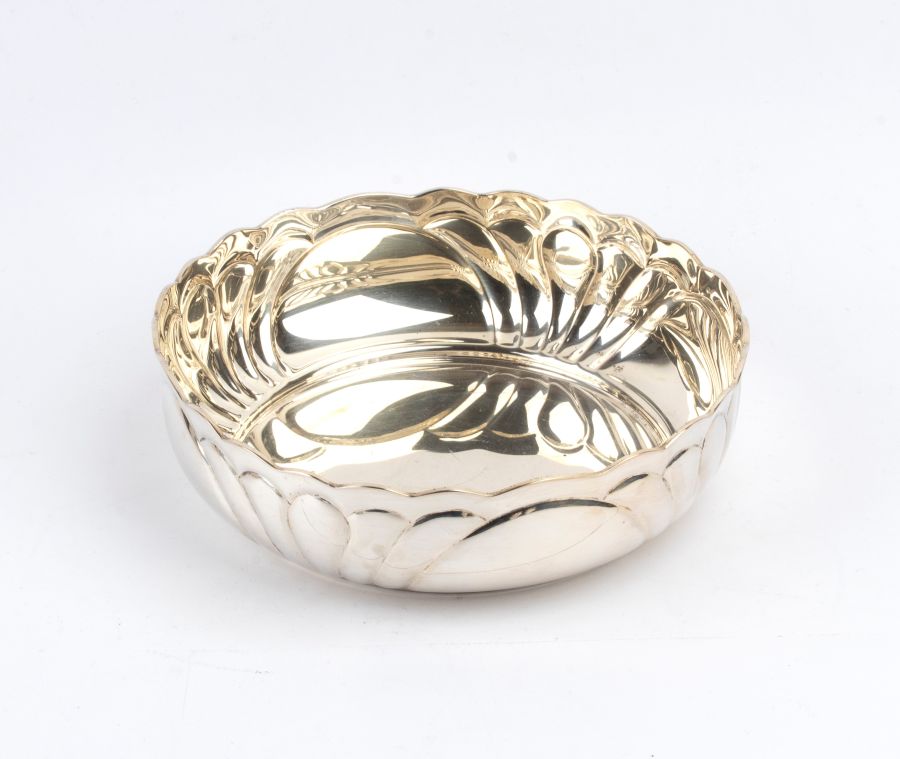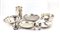 Peso complessivo: 2425 gr. in argento composto da: due vasetti, un porta bottiglia, un cestino, una zuccheriera e quattro vassoi.