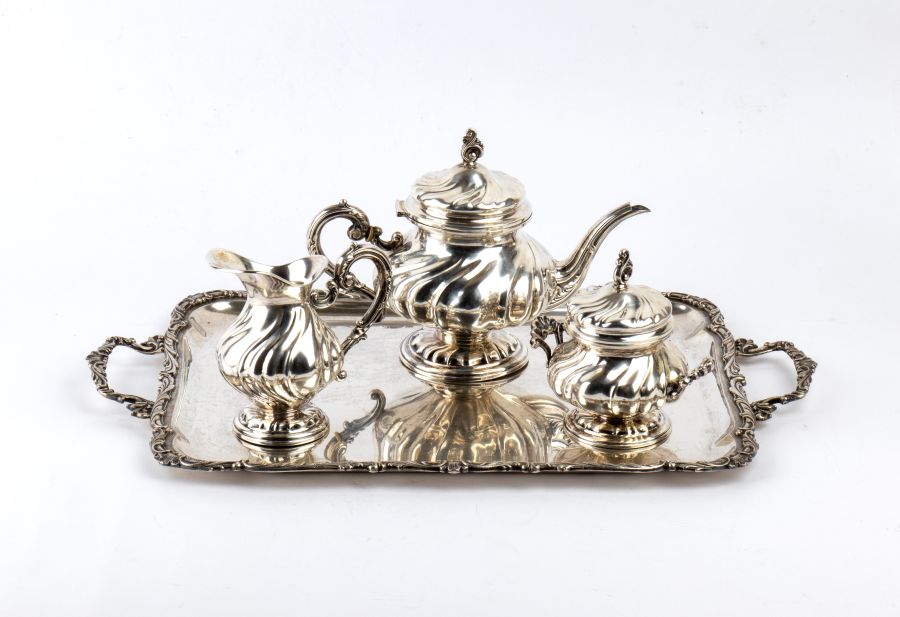 Servizio italiano da tè e caffe in argento fine XIX inizi XX secolo Peso totale: 1890 gr.