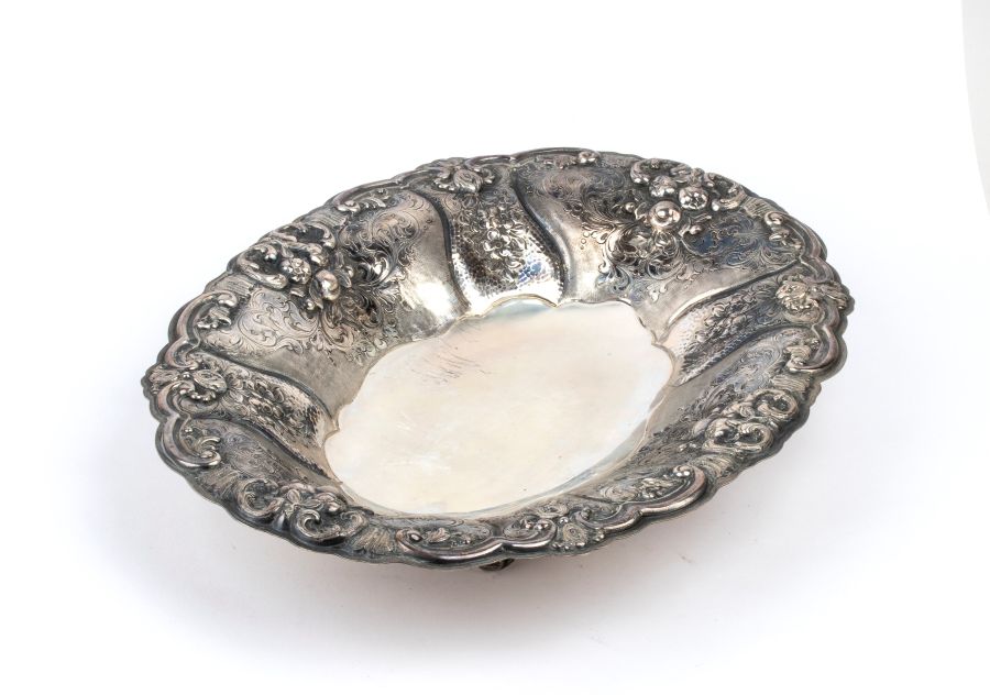 Centrotavola italiano in argento Alessandria, XX secolo Altezza x larghezza x profondità: 5,5 x 37 x 27 cm. Peso: 650 gr.