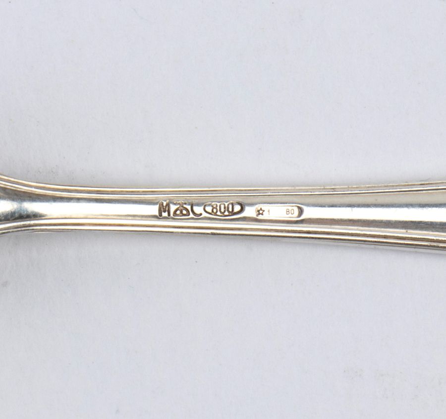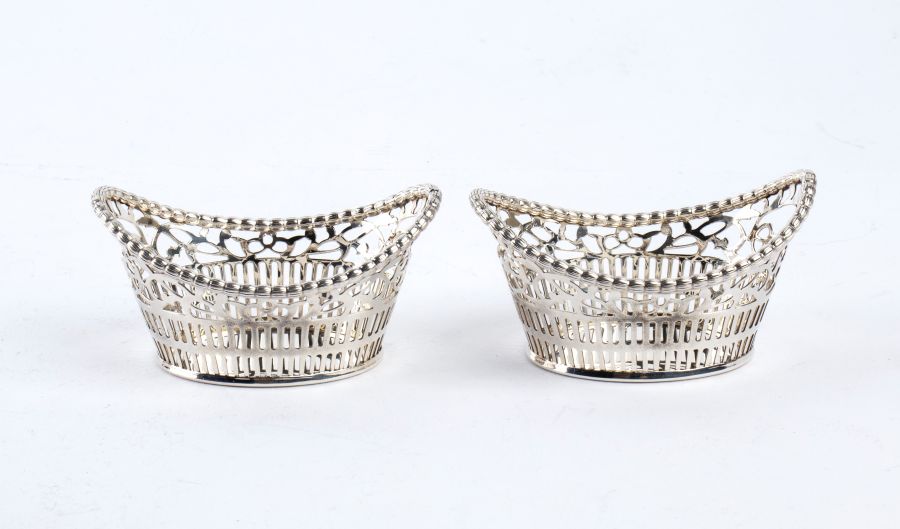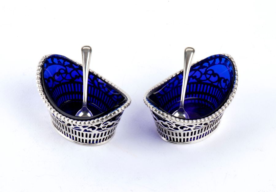 Coppia di saliere italiane in argento XX secolo Altezza x larghezza x profondità: 4 x 8,5 x 6 cm. Peso totale: 240 gr. Peso argento: 94 gr.