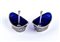 Altezza x larghezza x profondità: 4 x 8,5 x 6 cm. Peso totale: 240 gr. Peso argento: 94 gr. con bordo traforato a decori geometrici e contenitori in vetro blu.