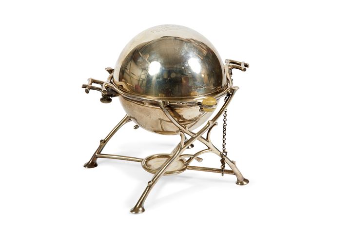 925/1000, Inghilterra, città di Sheffield 1898; poggiante su quattro piedini; corpo di forma sferica con coperchio girevole