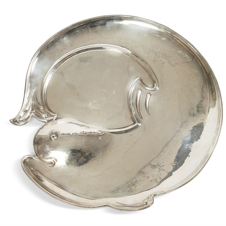 925/1000 firmato "Broggi", battuto a mano raffigurante una balena stilizzata