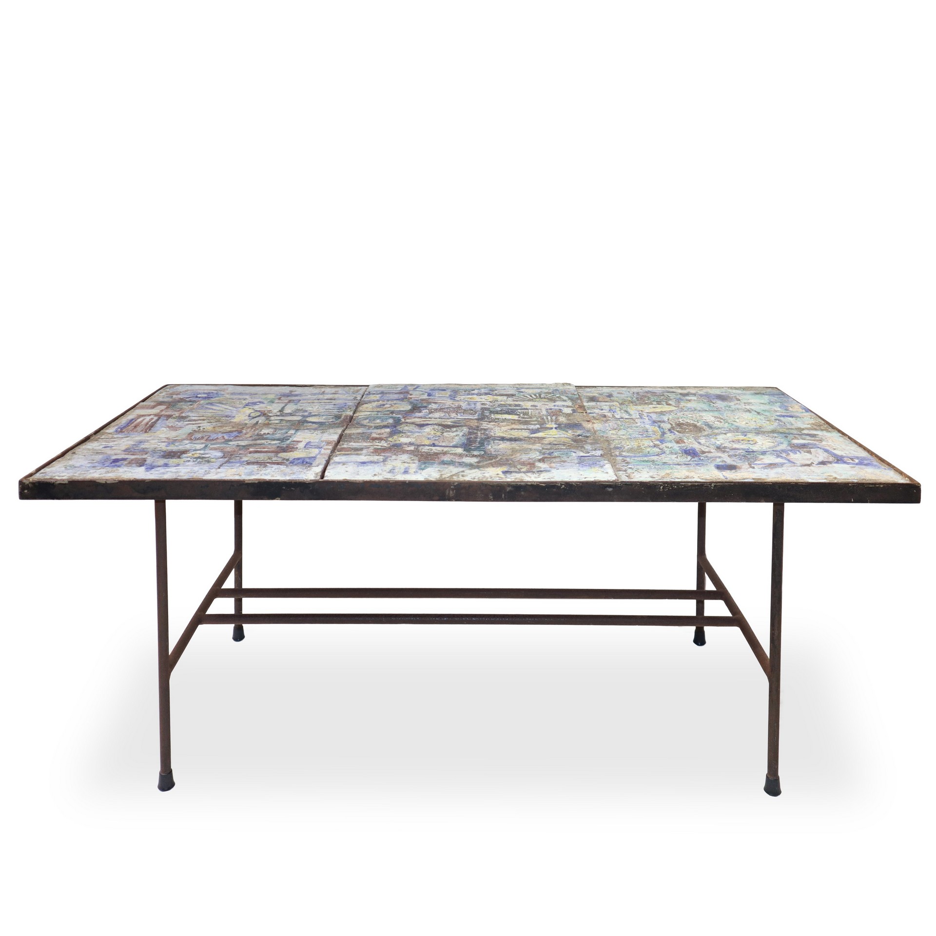 Tavolino da caffè con piano rettangolare con piastrelle colorate, 1960s h cm 44X104X53 Presenti piccole rotture