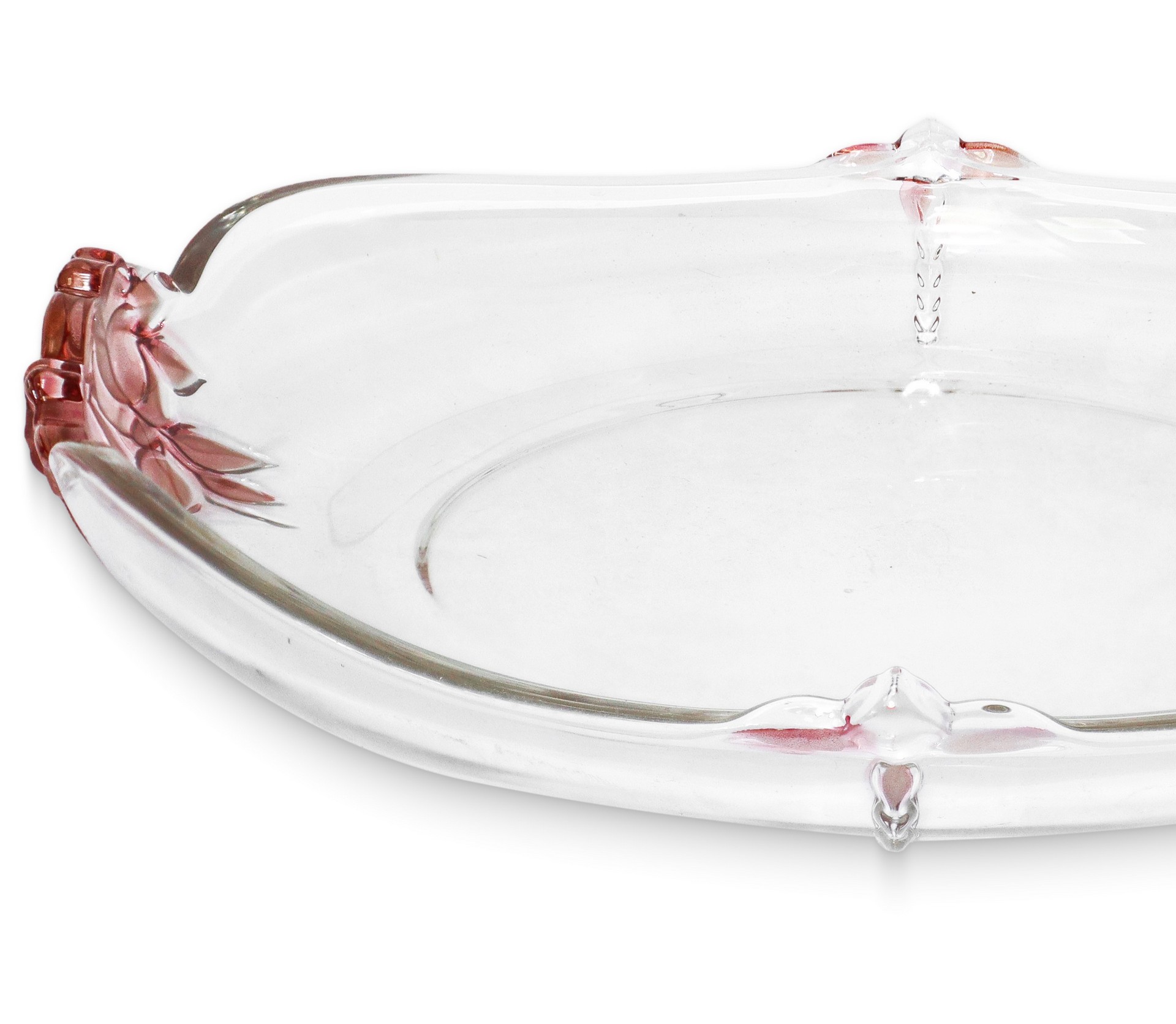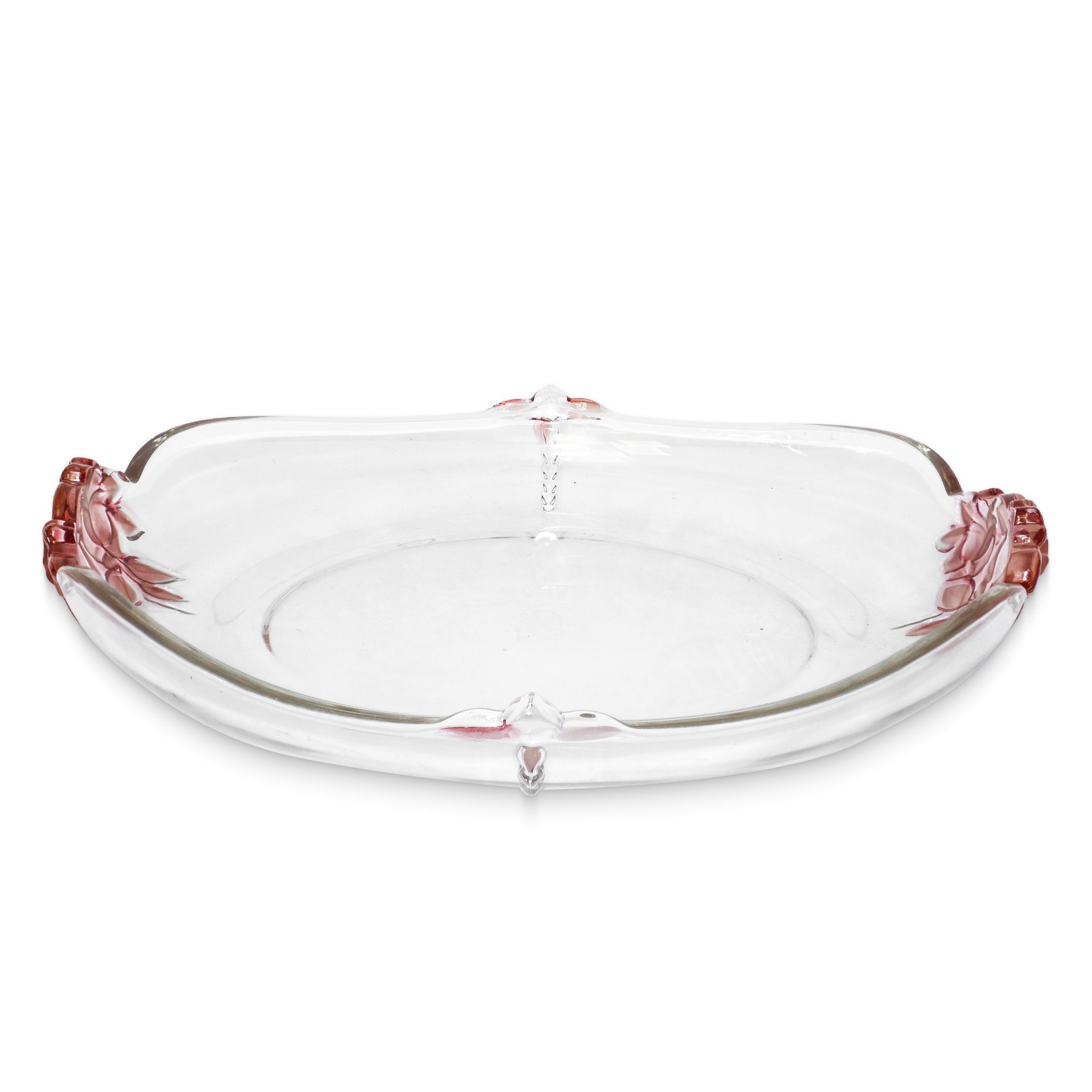 Centrotavola in vetro con fiori e libellule in rilievo ai lati, 20° secolo