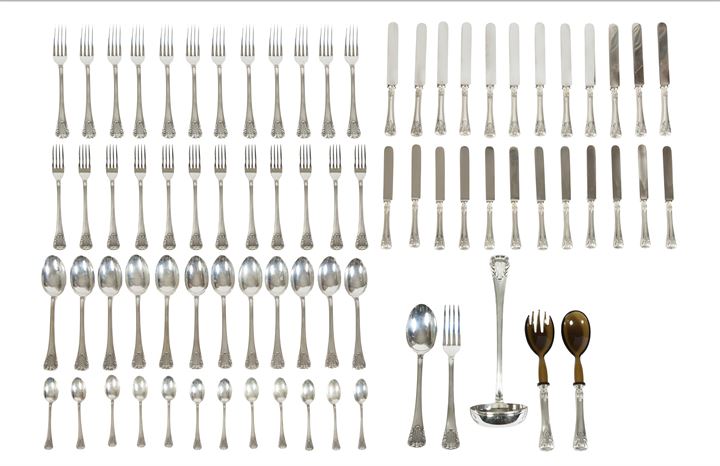 SERVIZIO DI POSATE IN ARGENTO Peso netto gr 4500 ca Composto da 77 pezzi: 12...