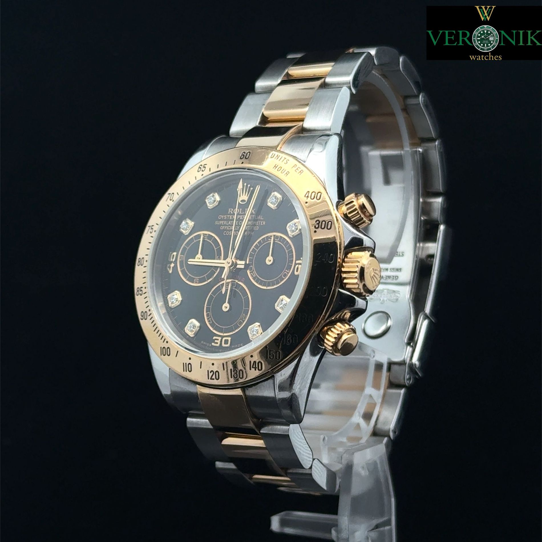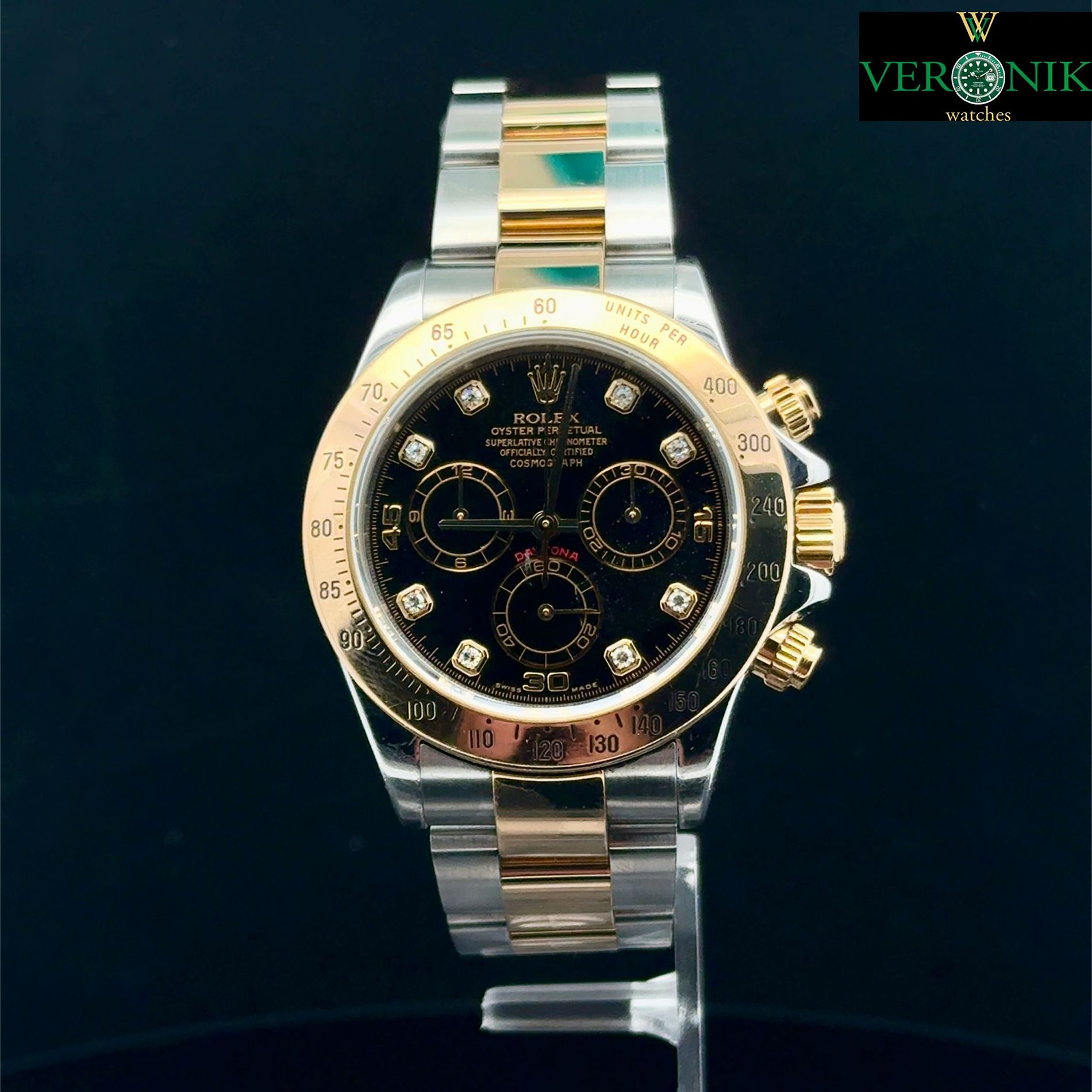 Marca Rolex Modello (Orologio) Daytona Numero di referenza 116523 Carica Automatico Materiale della cassa Oro/Acciaio Materiale cinturino Oro/acciaio Anni 2002 documenti originali Rolex, no box, la scatola viene utilizzata solo per fotografie non è in vendita Calibro Carica Automatico Cassa Materiale della cassa Oro/Acciaio Diametro 40 mm Impermeabile 10 ATM Materiale lunetta Oro giallo Vetro Vetro zaffiro Cinturino Materiale cinturino Oro/acciaio Colore cinturino Oro/acciaio Chiusura Déployante Materiale chiusura Oro/Acciaio Funzioni Cronografo - COMMISSIONE D’ASTA 25%