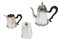 Composto da caffettiera, lattiera e zuccheriera, di forma stilizzata; manici in legno ebanizzato