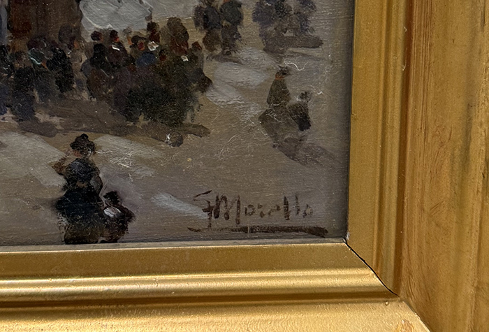 FEDERICO MORELLO, "Venezia", olio su masonite, dim. 34x48 cm. Al fronte: firma in basso a destra. Opera con cornice