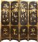 Giappone, XX secolo, composto da quattro pannelli, laccato a fondo nero con lumeggiature in oro. Un altro decorato con scene di vita con pietre dure e avorio; l'altro lato con volatili e piante dipinti in oro