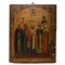 Icona russa Cristo Pantocratore con sette santi su fondo oro h cm 26X22,5 Lievi mancanze di colore