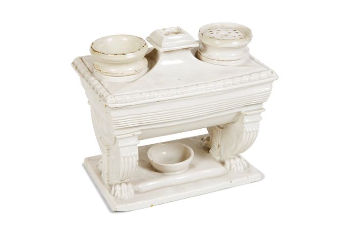 In ceramica bianca, a forma di sarcofago, epoca fine XVIII- inizio XIX secolo
