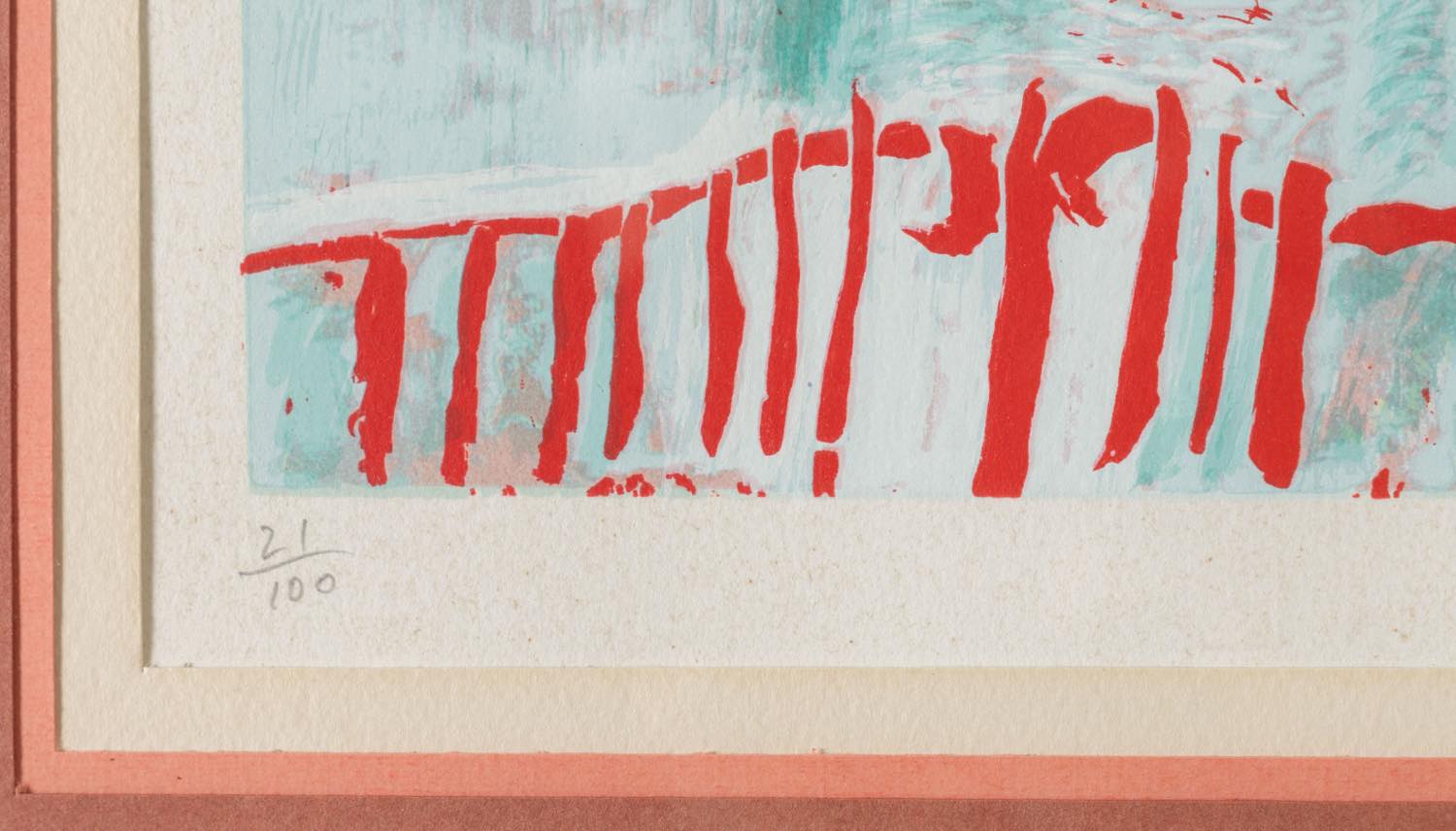 Serigrafia a colori su carta, firmata a matita in basso a destra, reca numero di tiratura 21/100 in basso a sinistra, lastra H cm 30.5x40 - con cornice H cm 54x63