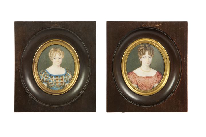 COPPIA DI MINIATURE SU AVORIO Cm 7,5x6 ognuna Di forma ovale, raffiguranti...