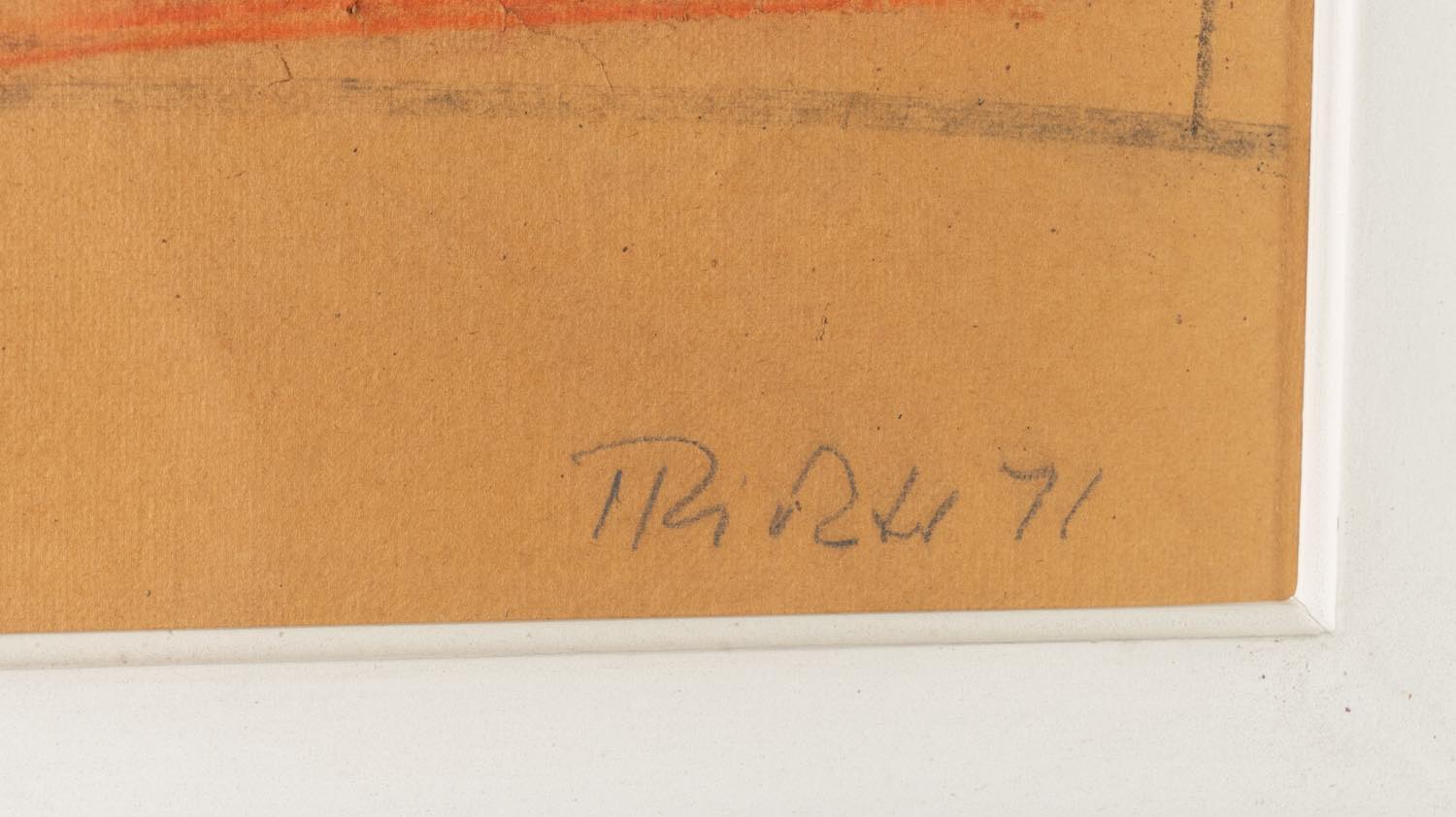 Tecnica mista su carta applicata a tela, firmata e datata a matita in basso a destra, H cm 35x42 - con cornice H cm 57,5x65 - Bibliografia di riferimento: Merdre, luglio - dicembre 1988, p. 170; Nucleo Arte, febbraio - marzo, 1979.