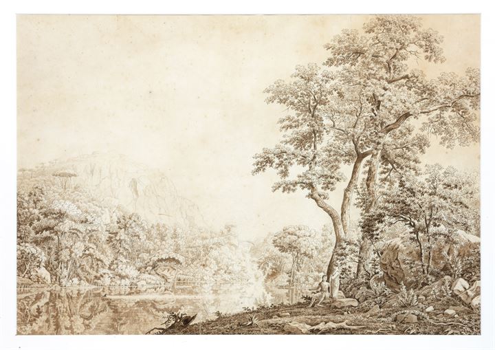 BRUNNER SAMUEL 1778-1848 "Paesaggio " 1814 45x64,5 tecnica mista su carta...